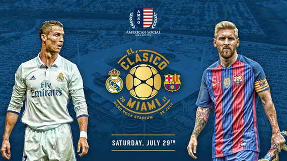 За всю историю "классико" оно лишь раз происходило за пределами европейского континента - это было в 1982 в Венесуэле. Но тогда все обставлялось без такой помпы. Поэтому Revelent Sports на голубом глазу преподносит "Классико в Майами" как нечто совершенно уникальное, небывалое. Улицы Майами пестрят постерами с информацией о предстоящем матче, специально разработанным логотипом и, конечно, изображениями главных звезд - Криштиану Роналду и Лионеля Месси (пусть даже Криштиану не примет участия в игре). 70-тысячный стадион Hard Rock будет заполнен до отказа. Как и перед Супербоулом, публику в перерыве разогреет поп-звезда - в данном случае, Марк Энтони.