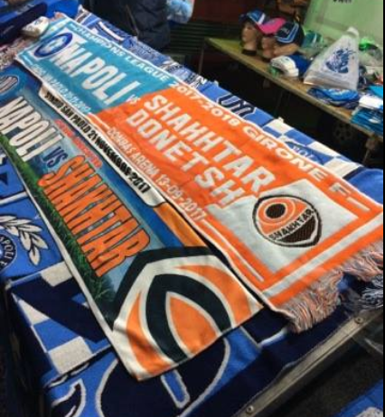 Но самый большой ляп удалось обнаружить на вот этом шарфе. По мнению авторов этого произведения, первый матч "Шахтер" - "Наполи" состоялся 13 сентября на "Донбасс Арене" в Донецке. Впрочем, подобное уже наблюдалось в одной из соц.сетей "Шальке" в прошлом году. После жеребьевки они тоже анонсировали матч в Донецке, но затем исправили свою оплошность.