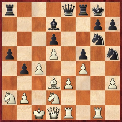 По контурам позиции легко угадывается защита Нимцовича. Белые привели пешечный центр в движение, но допустили пару неточностей, так что ситуация крайне запутанная.