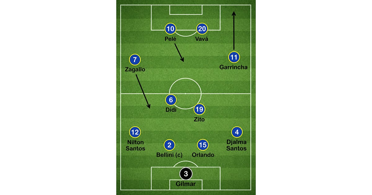 Бразилія у Швеції представила світові не просто гру, а математично вивірену систему 4-2-4, що стала відповіддю на атлетизм європейського футболу. Ключовою інновацією, яка змінила футбольну геометрію, стала роль Маріо Загалло. Формально перебуваючи в ролі лівого нападника, він фактично став першим в історії "човником", який при втраті м'яча опускався в лінію півзахисту, трансформуючи схему в 4-3-3.